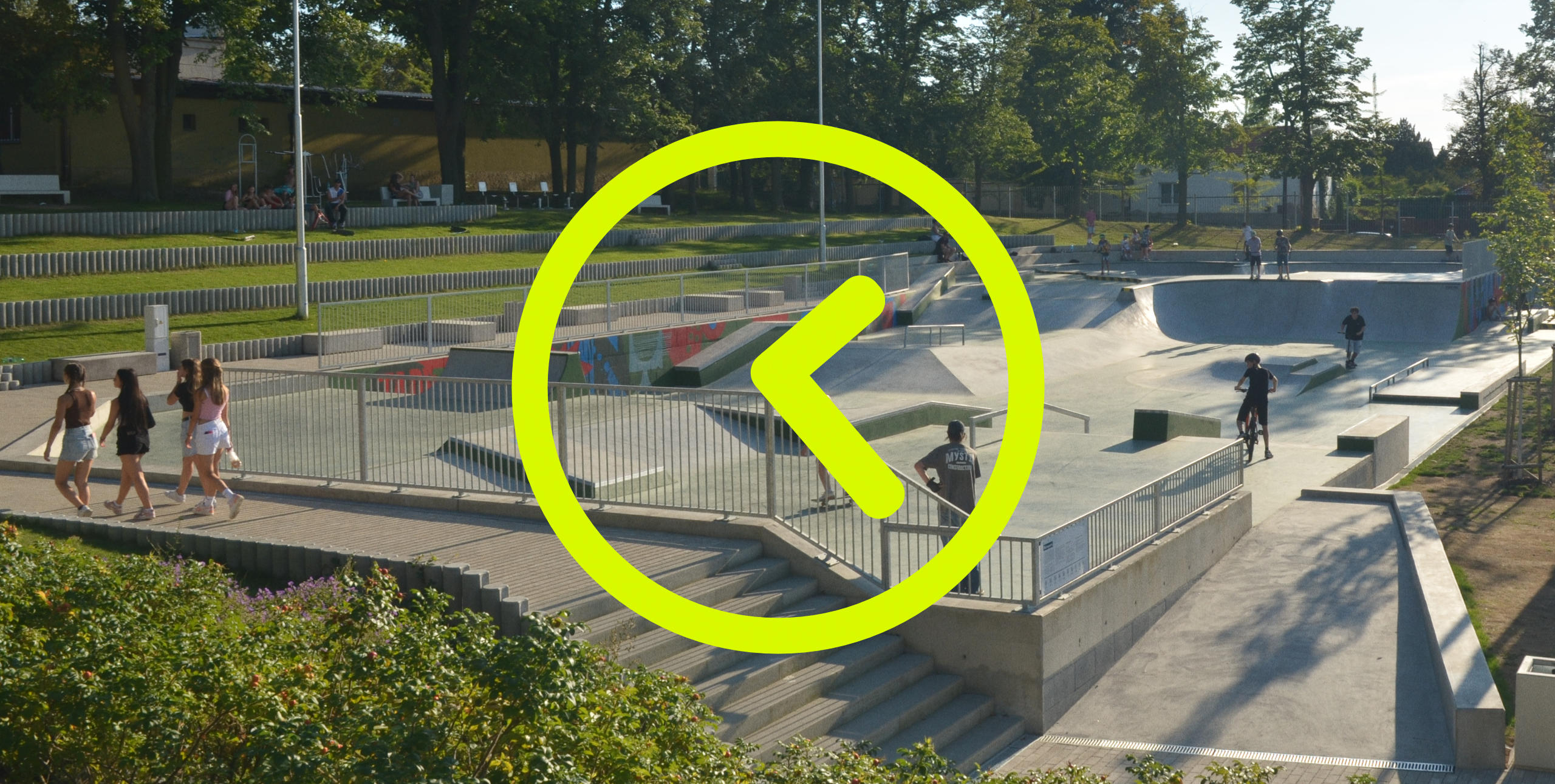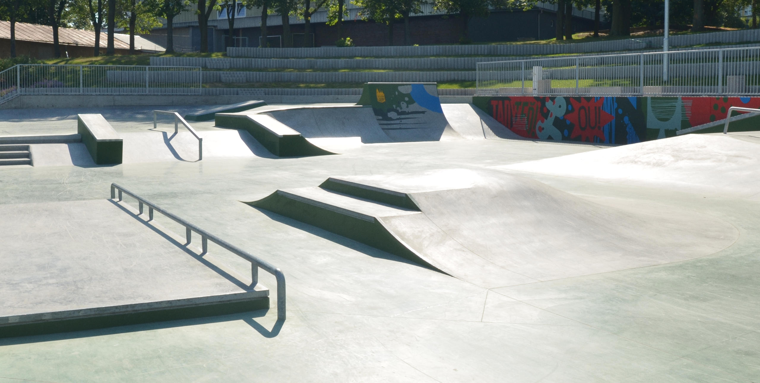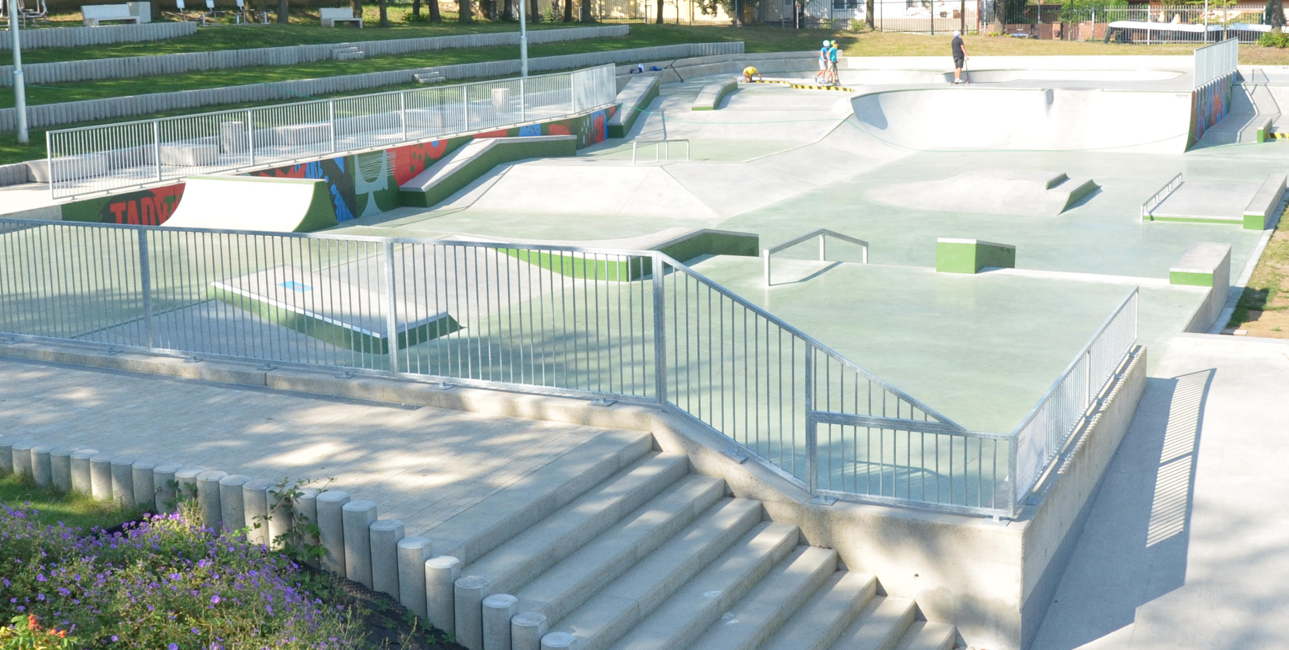 Skatepark je rozdělen na tři hlavní sekce. Big street sekce, umístěná přímo pod tribunou, nabízí větší rozjezdové rádiusy, velký roh, vyšší grindboxy, zábradlí a double set s kombi manuál bednou.