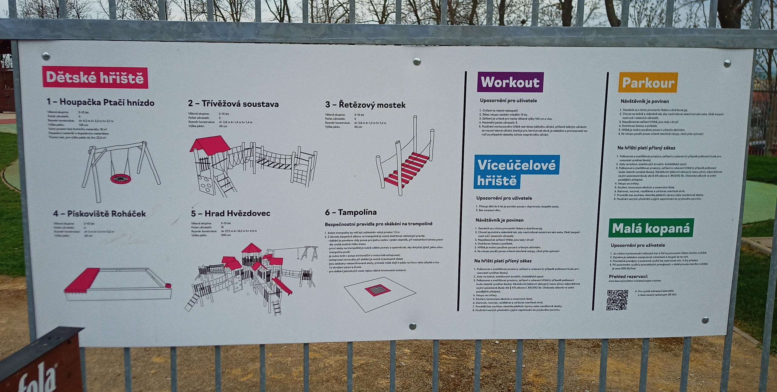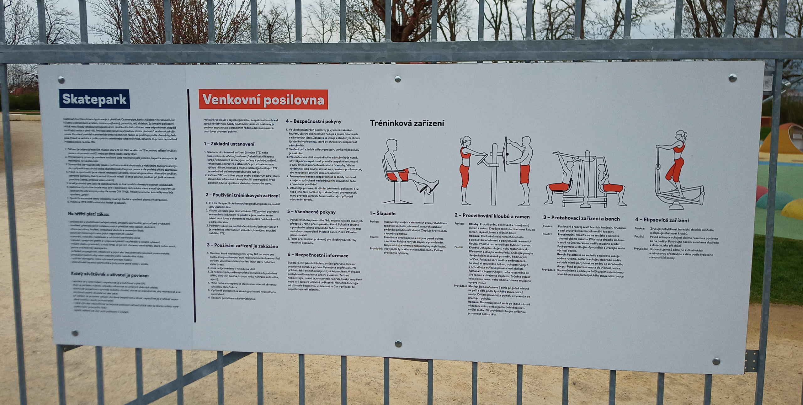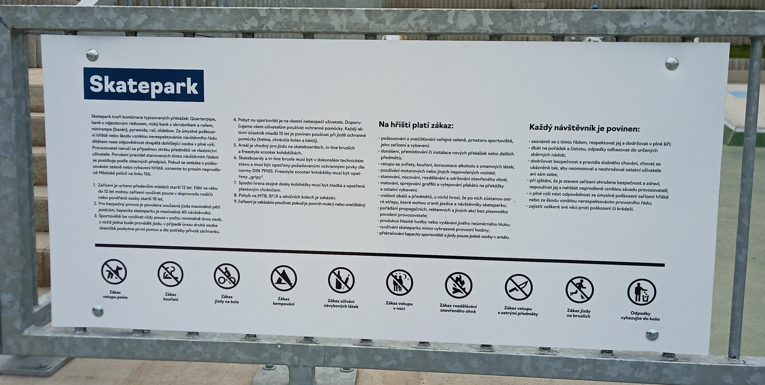 Návštěvníci zodpovídají za svou bezpečnost i bezpečnost ostatních. Při využívání sportovišť používají patřičné ochranné prostředky (helmy, rukavice, chrániče loktů a kolen apod.) V případě úrazu nebo jiného ohrožení jsou návštěvníci povinni zajistit poskytnutí první pomoci a v případě potřeby ihned zavolat záchrannou službu nebo jiné složky IZS.